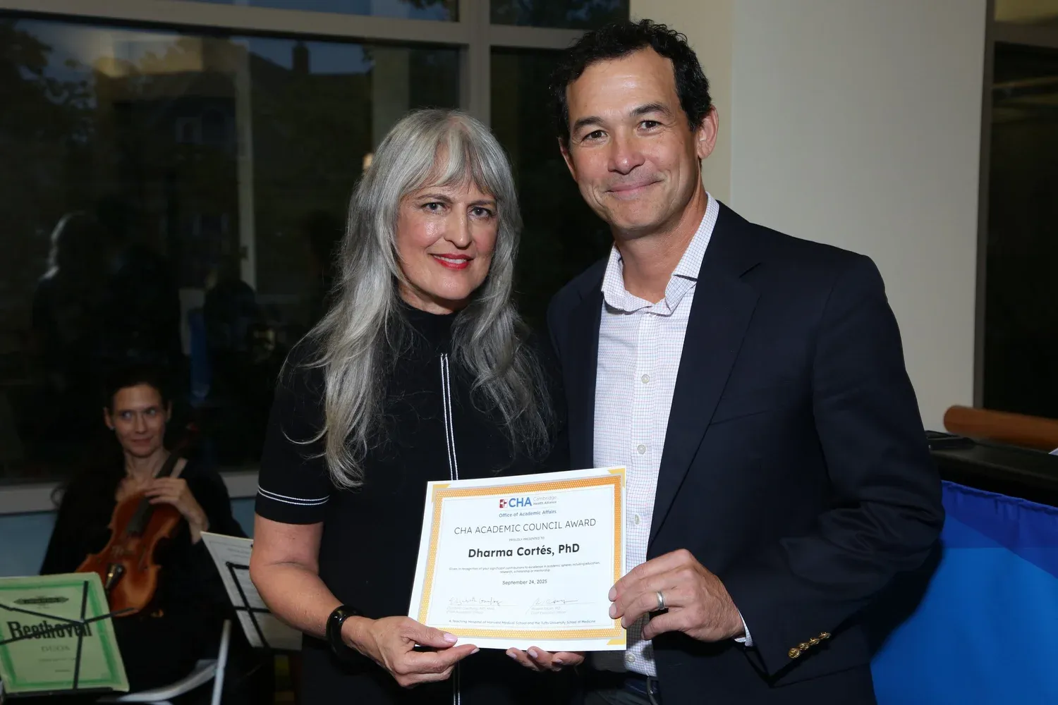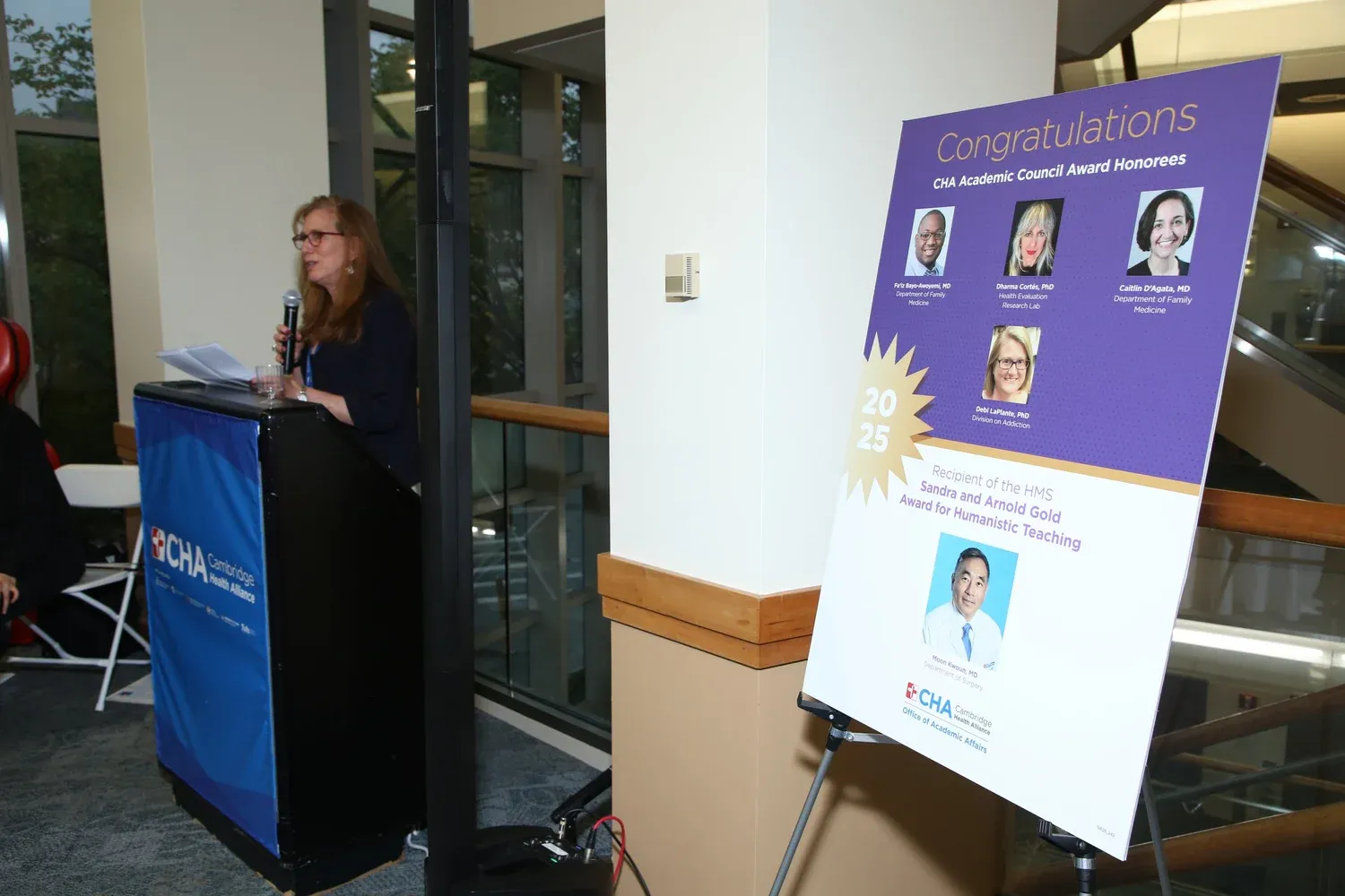 2025 Academic Council Award and 2025 Sandra and Arnold Gold Award for Humanistic Teaching recipients honored: The Center for Professional and Academic Development and the Academic Council hosted the 13th annual CHA Academic Council Award Ceremony earlier this month! It was wonderful to be back in person in the Healy Building atrium honoring our 2025 awardees and recent recipients of academic promotions. The event was well-attended by the CHA community, including colleagues, senior leaders, award nominators, and families of the awardees — all brimming with smiles and joy. Award nominators gave moving tributes about their honorees; Claire Laporte, Vice Chair, Board of Trustees expressed gratitude for CHA’s commitment to Academics, noting that this commitment keeps us at the cutting edge of an intergenerational knowledge transfer and that academic contributions enrich and elevate CHA, its patients, and its communities.